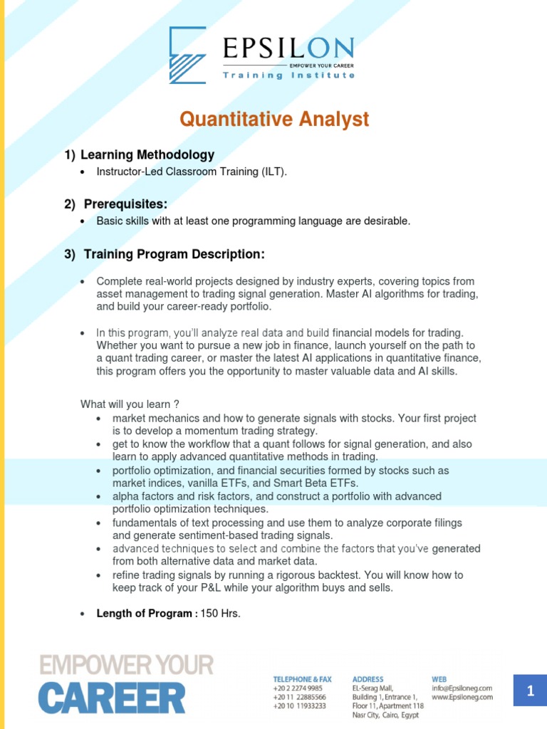 Discover the steps and the career path to progress in your career as a quantitative analyst career path. Let's find the answers to these questions as we discuss all you need to know on how to become a quant! Performing automated analyses, systematic analyses, algorithmic analyses and trades using quantitative software, systems and platforms. For being able to get into the finance world and become a professional quantitative financial analyst, you should have a formal educational degree. Therefore, if you've always longed to become a financial analyst, this article will show you how, and in less time.